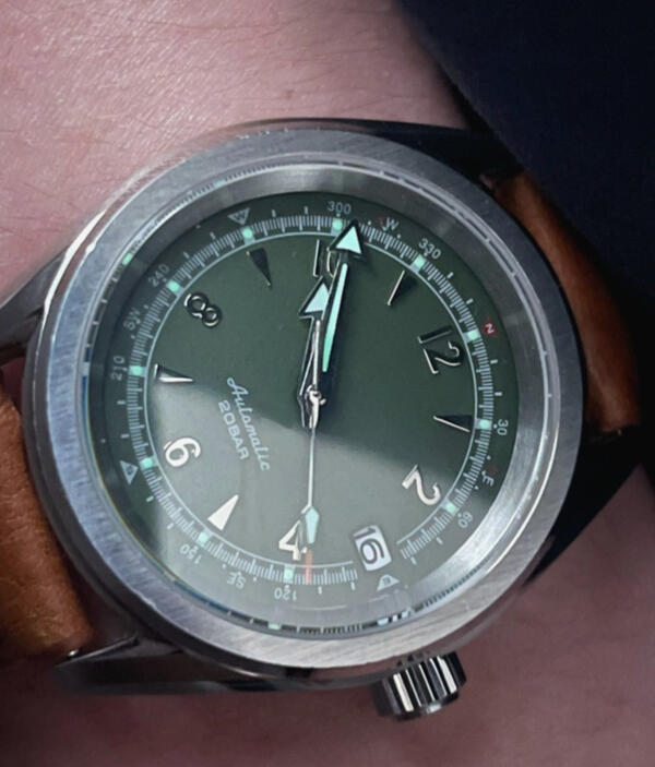 Details;The Titan Field features a lightweight yet durable Grade 2 titanium case paired with a scratch-resistant sapphire crystal. Powered by the reliable Seiko NH70 automatic movement, it offers 200 meters of water resistance and a screw-down crown for added protection. The watch includes two straps: a full grain Italian leather strap from WatchandStrap.co.uk with quick release, and a rugged French parachute strap in green. Case dimensions are 36mm in diameter, 45.7mm lug-to-lug, with a 20mm strap width. The new improved design featured in the first two photos comes with slightly larger hand set however the small hands are available still upon requestAvailable to order