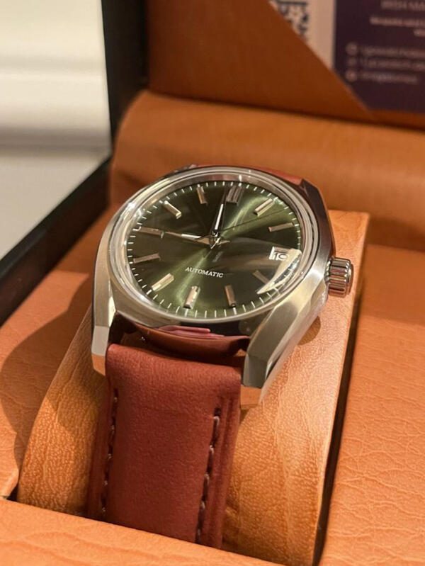The Stable is a refined 38mm dress watch inspired by the elegance of a day at the races. Its sharp, no-bezel case takes cues from the Grand Seiko 62GS, giving the deep green sunburst dial a wide, open presence.The dial keeps a classic, uncluttered look with no lume, while the hands include a subtle touch for low-light practicality. Powered by the reliable NH35 and built with sapphire crystal, 316L steel, a screw-down crown, and 100m water resistance, it’s durable yet refined. At 12.2mm, it’s our thinnest watch to date.Finished with a chestnut full-grain leather strap, the Stable blends quiet luxury with everyday wearability — a timeless dress watchSold